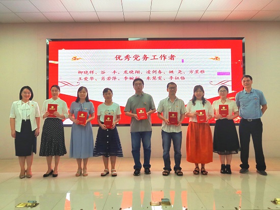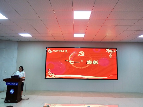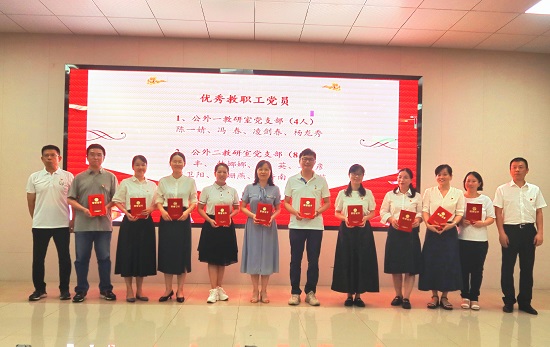 第二个环节,由学院党委副书记周芳宣读表彰决定,陈一婧等22名教职工党员和刘乐冰等19名学生党员获评学院“优秀共产党员”称号、龙晓翔等11人获评学院“优秀党务工作者”、公共外语二教研室党支部等2个党支部获评学院“先进党支部”。