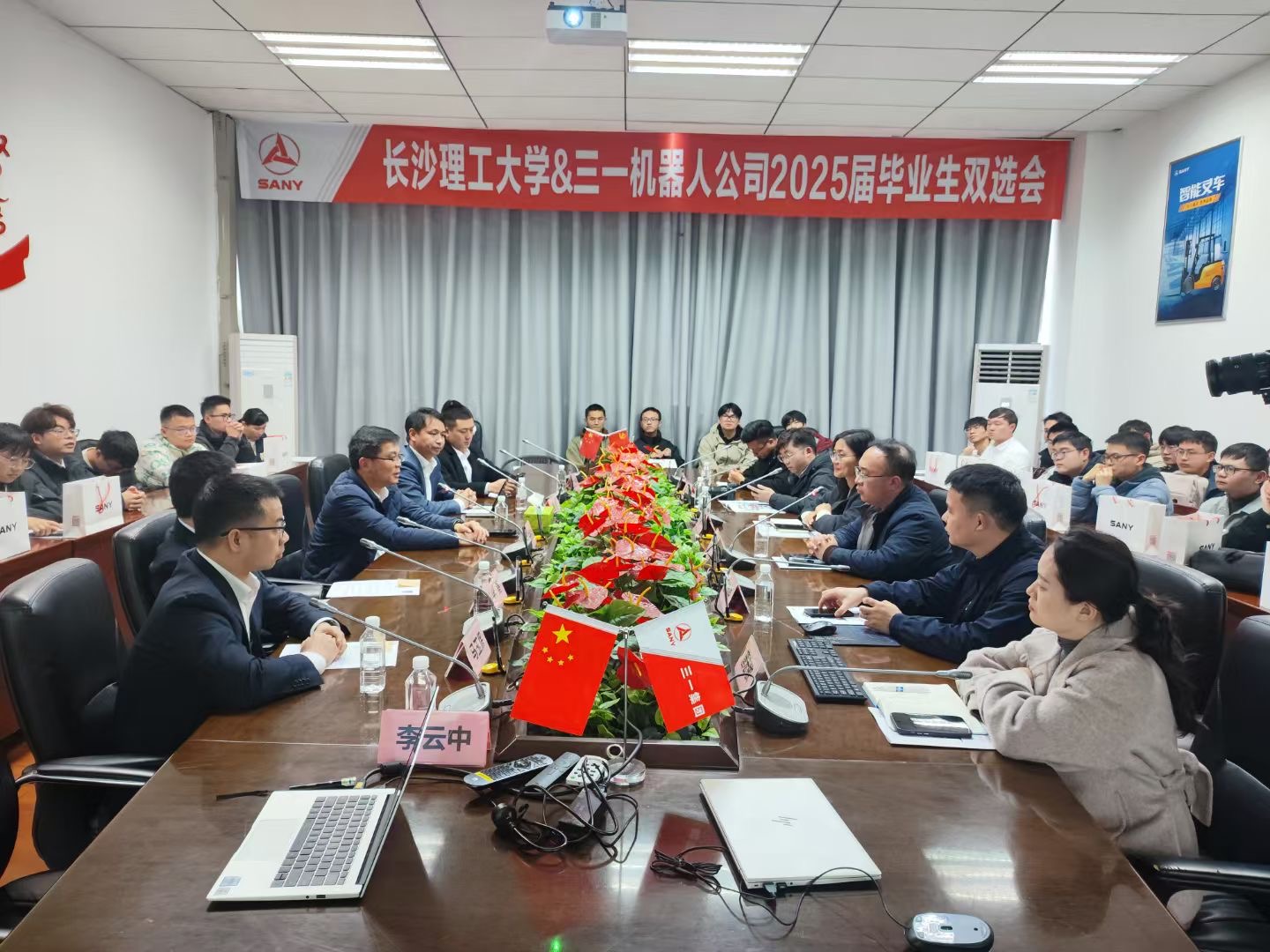 3月14日下午,MG冰球突破官网外国语学院联合电气与信息工程学院、机械与运载工程学院,共同组织37名2025届毕业生赴三一机器人科技有限公司开展“三湘企业行”就业服务活动。此次活动由辅导员郭恒带队,外国语学院学生积极参与此次“送生进企”创新实践,通过“认知-适配-签约”三维服务体系,与企业进行零距离接触。