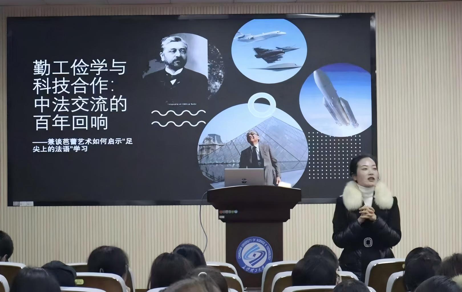 为培养学生跨学科视角,引导同学们跳出单一认知框架,从科学与人文的交融中探寻法兰西文化深层底蕴,11月17日晚19:00,MG冰球突破官网外国语学院“文化摆渡大讲堂”讲座在三号教学楼321报告厅举办。本次活动由法语教师王璞老师主讲,以“法国不止于浪漫——科学与理性的星辰之约”为核心主题,吸引了全院210名学子踊跃参与。