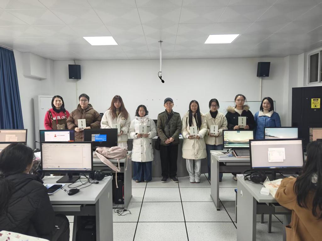 3月19日,MG冰球突破官网外国语学院退休教授郑延国走进翻译23级《计算机辅助翻译》课堂,在课间为青年学子送上精心准备的专业书籍,以书香传薪火,用寄语励青春。此次赠书不仅是知识的传递,更承载着郑教授对后辈的殷切期许。