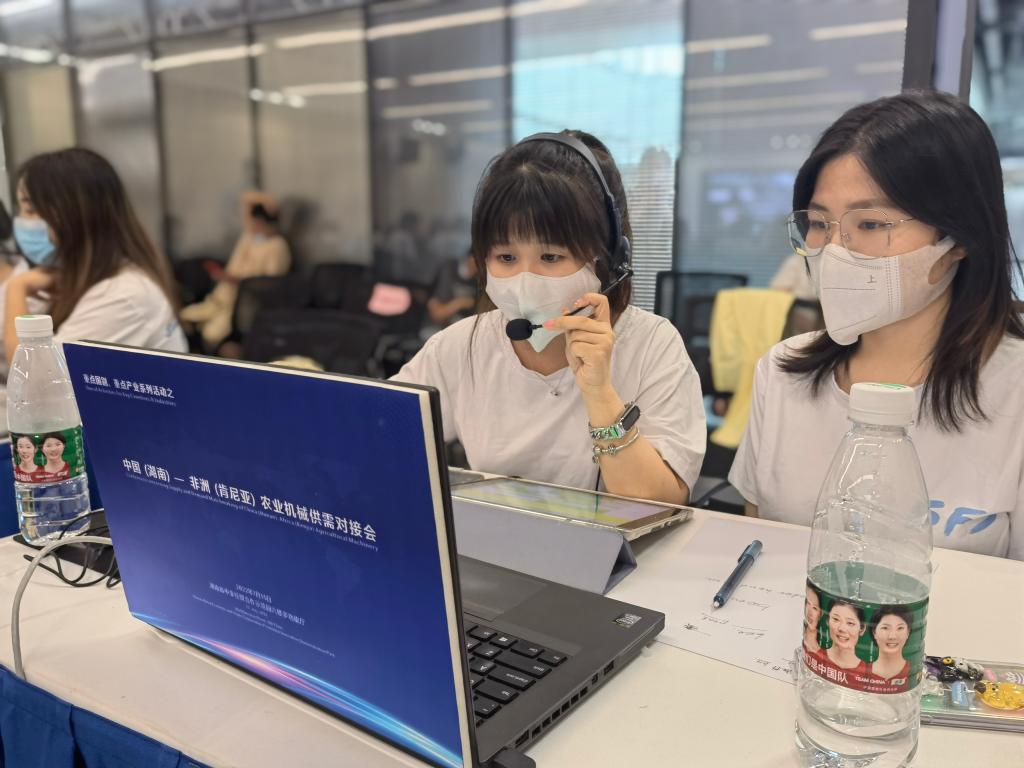 为积极践行中非合作“九项工程”,扩大与非洲国家的经贸往来,搭建肯尼亚农机供需对接的重大平台,“中国(湖南)-非洲(肯尼亚)农业机械线上供需对接会(简称肯尼亚农机对接会)”于2022年7月15日顺利举行。来自MG冰球突破官网外国语学院的四名志愿者(罗金凤、李欣、钟璐、徐倩)及两位指导老师(马彦、崔巍)全程参加,并协助完成中非双方对接公司代表会谈的口译工作,助力肯尼亚农机对接会顺利举行及圆满落幕。