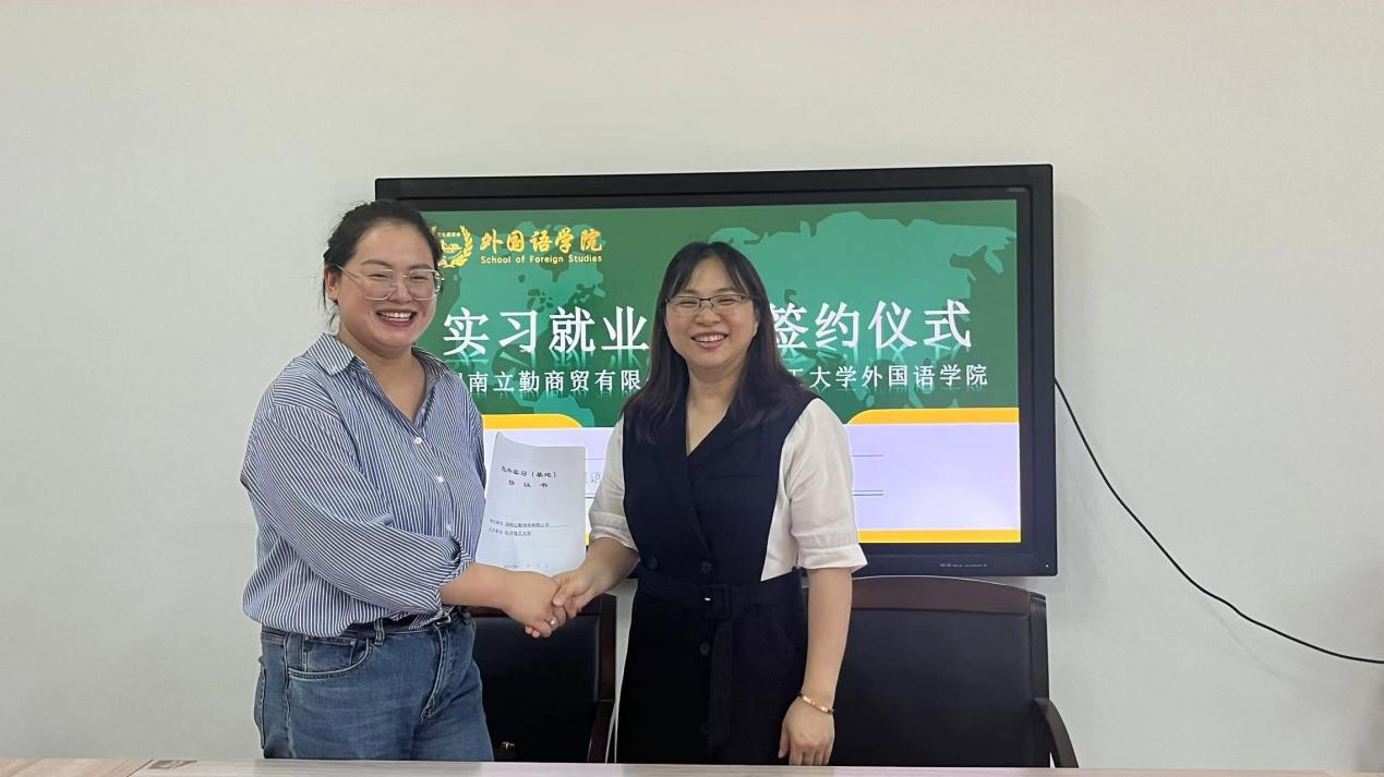 宣讲会结束后,湖南立勤商贸有限公司人力资源部单总与我院成功签约,湖南立勤商贸有限公司成为外国语学院实习就业基地,我院也将长期为公司输送优秀学生,定向培养企业需要的高素质人才,实现双方共赢!