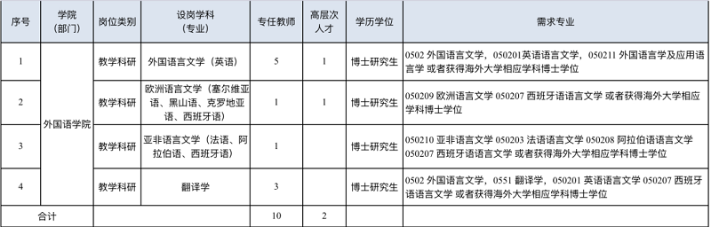 学院坚持践行“博学力行,守正拓新”的校训精神,培养“厚基础、宽口径、强能力、重实践”,具有创新精神和较强社会适应能力的高素质外语人才,立足湖南,面向全国,打造特色鲜明、优势明显的外语高级人才培养基地。为继续加强师资队伍建设,夯实科研团队实力,提高人才培养质量,现面向海内外诚聘英才!