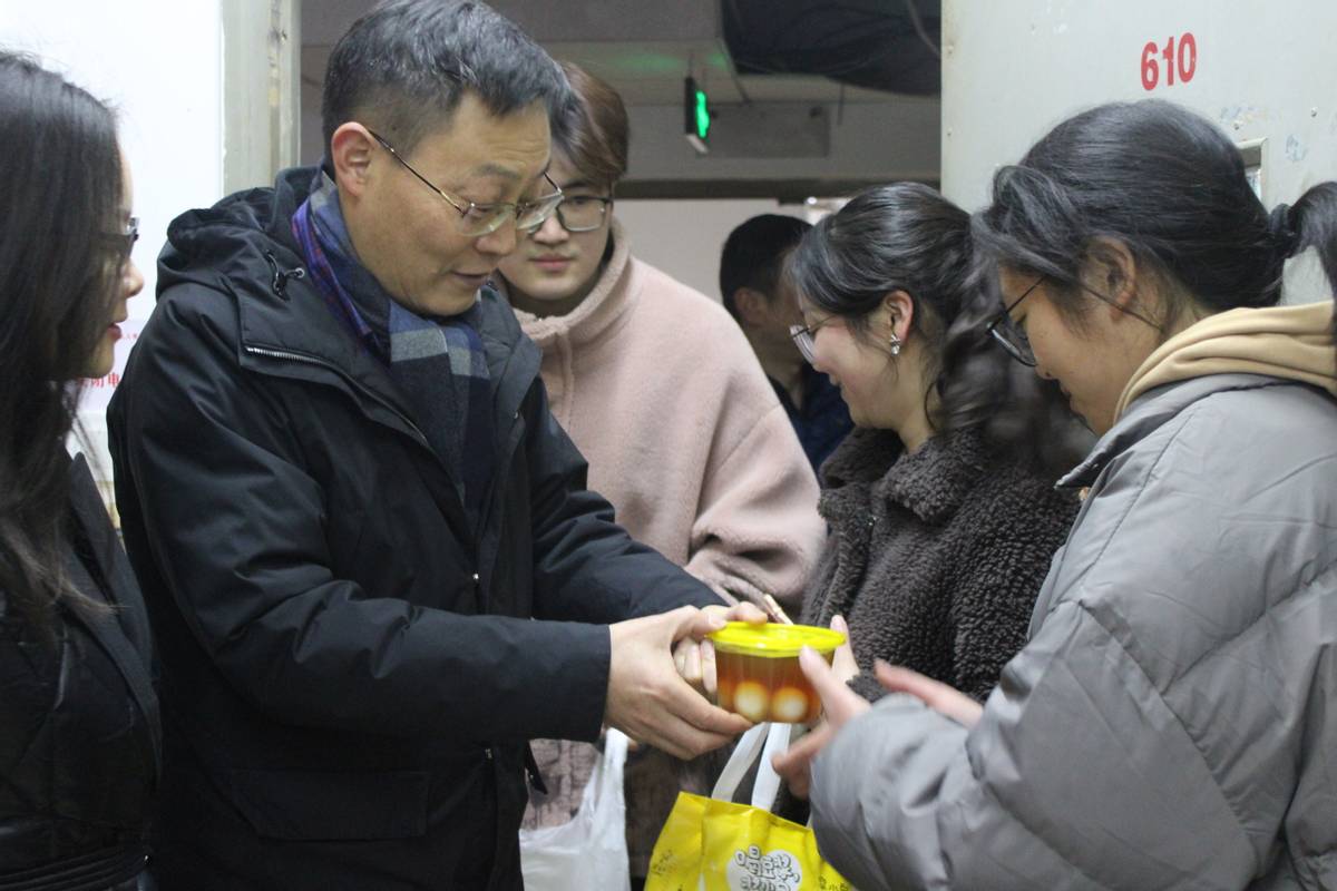 在走访过程中,学院领导为所有在校学生一一送上热腾腾的汤圆,祝福同学们的生活团圆美满,未来可期。老师们十分关心学生们假期的学习、生活情况,和大家畅聊家常,鼓励大家在新学期尽快进入学习状态、刻苦学习专业知识、牢固掌握专业技能。对于当前的低温天气情况,老师们还细心提醒同学们要注意保暖与出行安全。