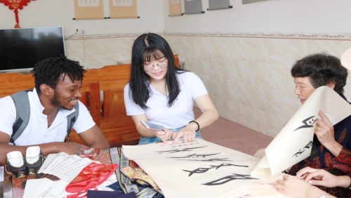 芙蓉国里君子女,世上无双女书魂。“哇!原来女书是女性自己创造的文字,竟然仅在女性之间流传!这太有智慧了,佩服!”这是MG冰球突破官网外国语学院女书调研团的留学生Amoussou Ekoe在湖南永州市江永县女书文化村参观时发出的惊叹。在这个夏季,文化摆渡者们再一次担负起了传播中国优秀传统文化的使命。今年,MG冰球突破官网外国语学院的研究生们赴湖南永州市开展女书调研,为女书探索出了国际化道路。