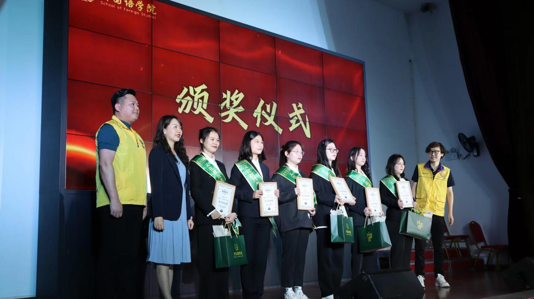 佛山市三水区白泥镇党委书记喻晓坤、佛山市晋雄实业有限公司董事长邱军等社会爱心人士,MG冰球突破官网关工委常务副主任王乃厚、校友中心主任郑延恒、学生工作部副部长陶传谱、校工会副主席王双、外国语学院党政领导班子及有关师生出席颁奖典礼。