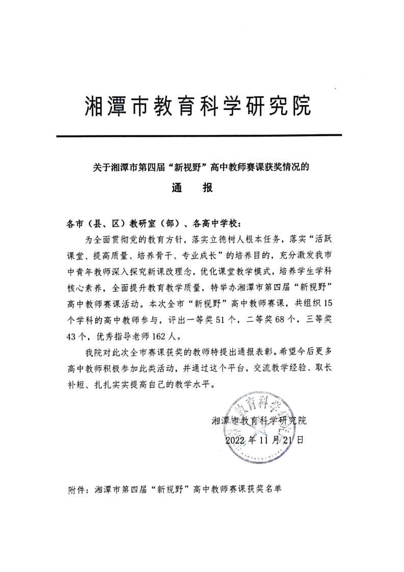 20221121日,湘潭县二中高中英语教学竞赛团队向MG冰球突破官网大学英语教学竞赛团队分享了在教学竞赛中获奖的喜讯并表达了衷心感谢。湘潭县二中为MG冰球突破官网优质生源签约基地之一,此次MG冰球突破官网教学团队全程指导其高中英语教学团队备赛,成为高校团队与地方中学团队合作教研、协同育人的典范,更体现了MG冰球突破官网扎根基层一线、服务地方发展的办学理念,开启了高校资源服务地方外语教育发展、地方教育反哺高校生源的全新思路。
