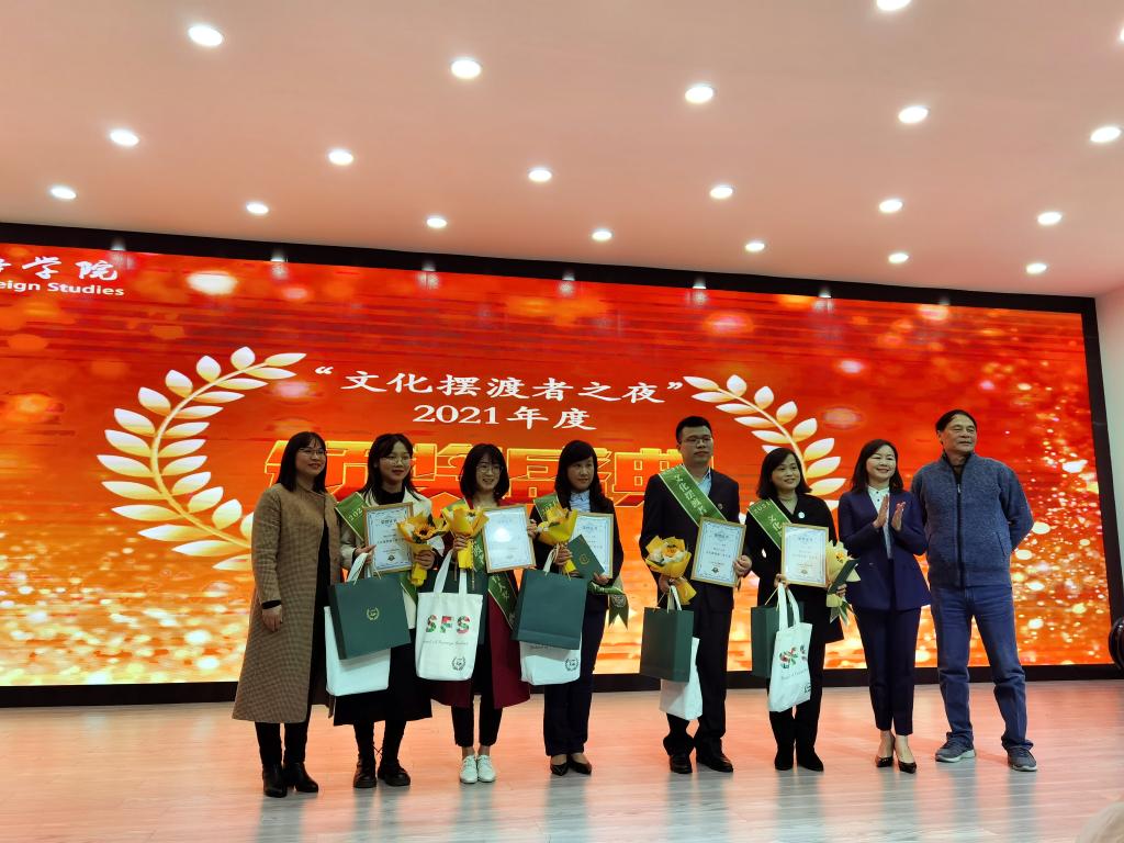 在各位领导和嘉宾的期待与寄语中,“文化摆渡者”专项奖学金的颁奖仪式隆重举行,学院为在2021年度表现优异的文化摆渡者佩戴专属绶带、并颁发了证书和丰富的文创产品,各位奖学金获奖代表也上台表达了对学校和学院的感激,并表示自己将更加坚定信念,砥砺前行。