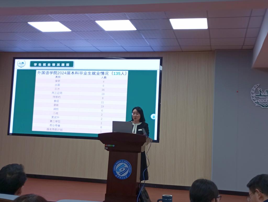 党委副书记周芳在会上宣读了两起教学事故通报文件,并介绍了学院就业工作推进情况。她强调了就业工作的重要性,要求学院各相关部门加强协作,为毕业生提供更多就业机会和支持。