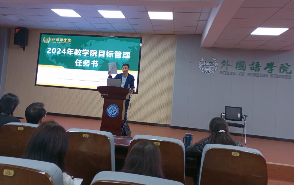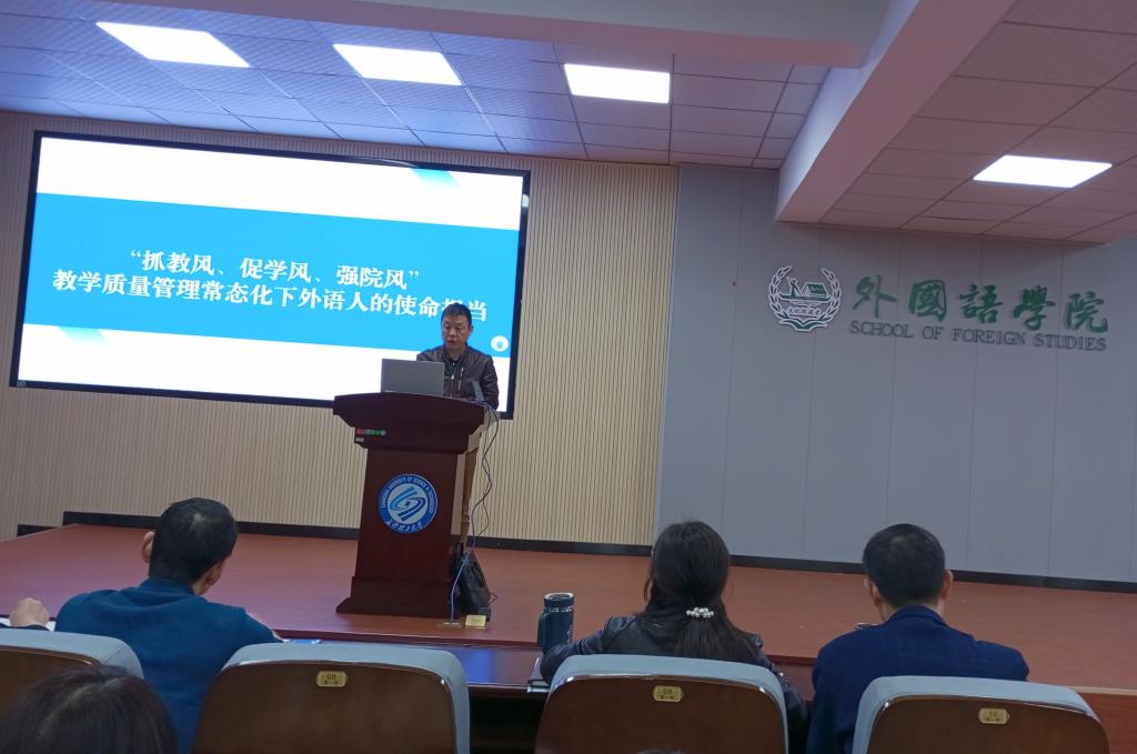 2024年4月9日下午,MG冰球突破官网外国语学院在金盆岭校区3号教学楼321报告厅召开了以“抓教风、促学风、强院风”为主题的专题大会。本次大会由外国语学院院长段胜峰主持,学院全体教职工出席。