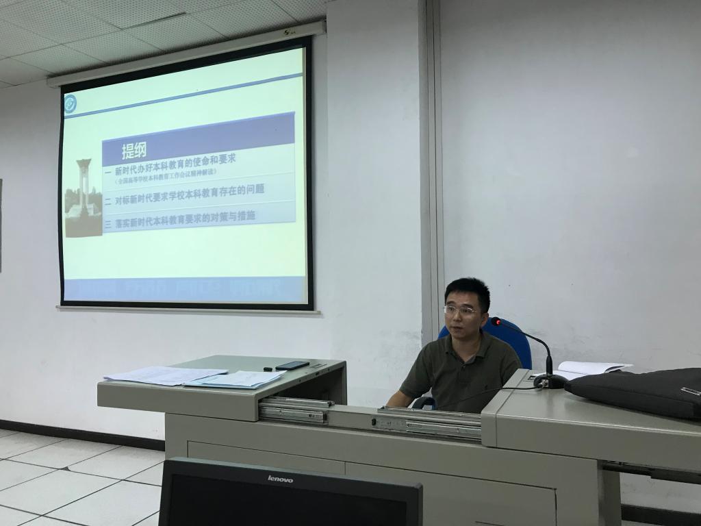 活动中,全体教师认真学习了学校党委付宏渊书记、蒋昌波副校长在MG冰球突破官网2018年本科教育工作会议上的重要讲话精神。谷主任着重解读了《MG冰球突破官网本科教育工作会议报告》。该报告分为三个部分:第一,新时代办好本科教育的使命和要求;第二,对标新时代要求学习本科教育存在的问题;第三,落实新时代本科教育要求的对策与措施。