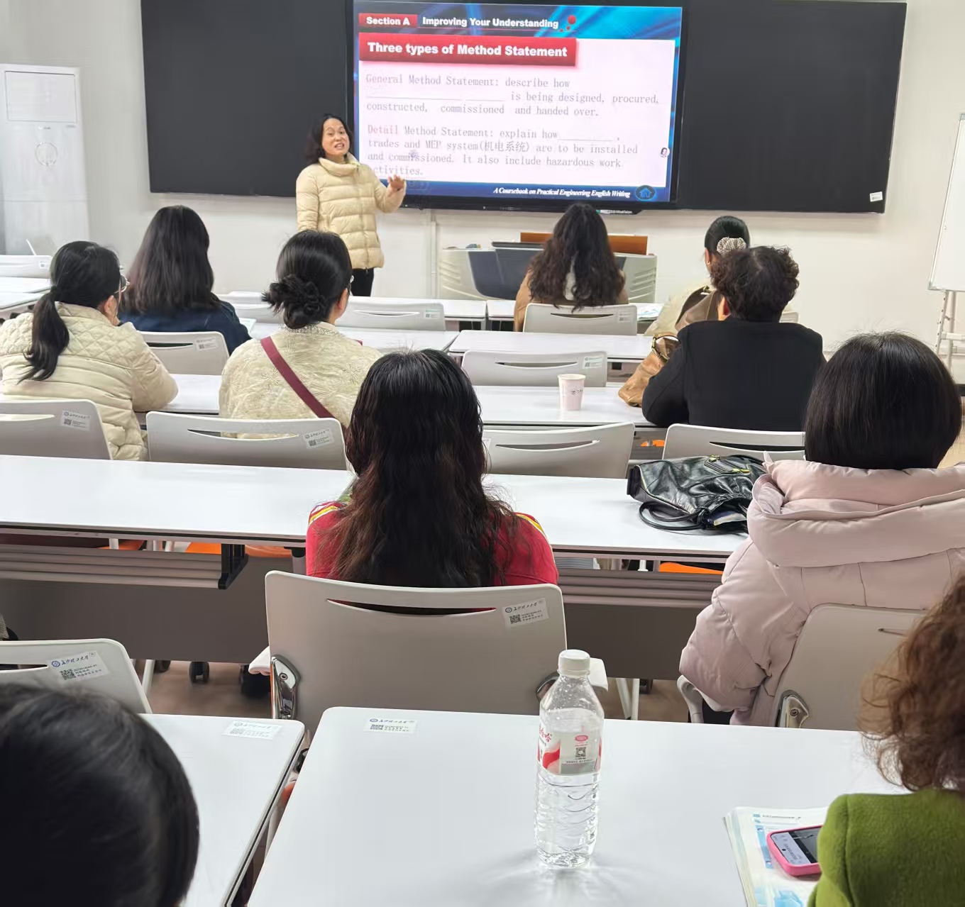 主讲人王浩萍老师系统讲解了施工方案书的标准结构,重点解析了施工顺序、安全措施、质量控制、资源配置等核心模块的写作规范。通过实际工程案例,展示了如何将复杂的技术流程转化为清晰、准确的英文表述。