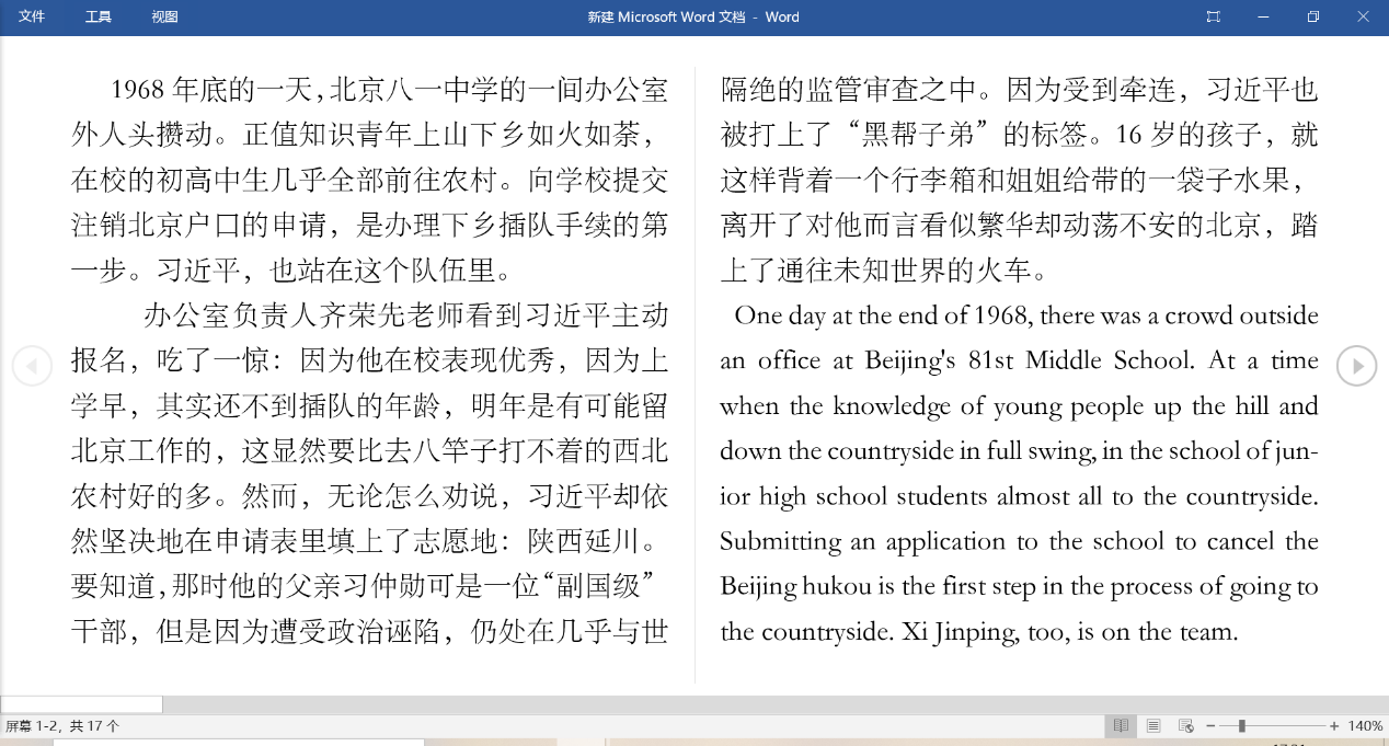 今年正值中国共产党成立一百周年,一世纪风雨兼程,九万里风鹏正举。为了在观察实践中学党史、强信念、跟党走,努力成为担当民族复兴大任的时代新人,以实际行动庆祝中国共产党成立100周年,翻译1902班的薛丽同学响应学院号召,对《习近平的七年知青岁月》节选进行了翻译,从中体会感悟中国领导人习近平总书记的早年知青时期经历。