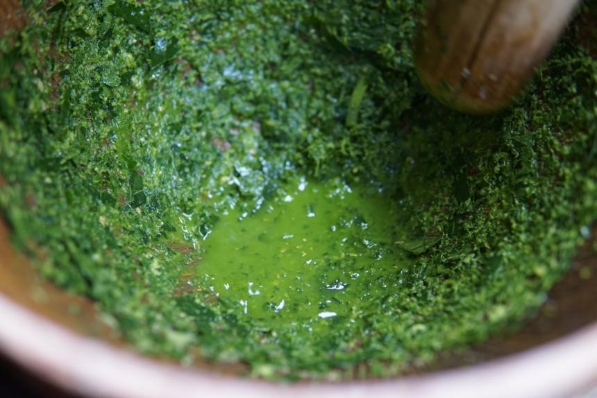 在此次活动中,彭依梦学习并实践了做擂茶的过程。擂茶制作用料很讲究,制作擂茶时,按一定比例加入上等茶叶、大米、豆、花生、芝麻、玉米等,放进陶制擂钵,用茶枝做成的圆头擂棒,细细地研碎,磨成泥状后倒进茶钵里备用。最后冲开水和匀,加上炒米,擂茶就完成了。