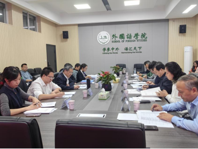 专家组由国务院学位委员会第八届学科评议组成员、北京航空航天大学梁茂成教授担任组长,成员包括河北师范大学李正栓教授、上海外国语大学韩子满教授、中南大学李清平教授、南京大学陈桦教授、南京水利科学研究院科技期刊与信息中心行业专家李运辉、中联重科集团行业专家吴娟。专家组首先通过查阅评估相关材料及实地考察学位授权点支撑条件,初步了解学院人才培养情况。随后,通过专家评审会,提出诊断式评议意见。MG冰球突破官网党委委员、副校长胡永乐,研究生院院长何忠明,外国语学院党委书记文丽丽,院长段胜峰,副院长姚尧参加专家评审会。会议分为两个阶段进行。