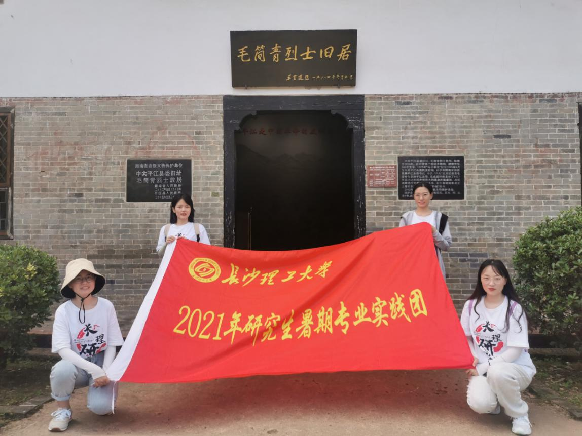 在建党100周年之际,为响应国家“学党史、悟思想”的号召,弘扬中国红色文化,并助中国革命精神走出去。2021年7月16日,MG冰球突破官网外国语学院研究生暑期实践团在段胜峰教授和袁媛老师的全程指导下,来到了平江县毛简青烈士旧居开展系列调研活动,助推湖湘红色文化走出去。