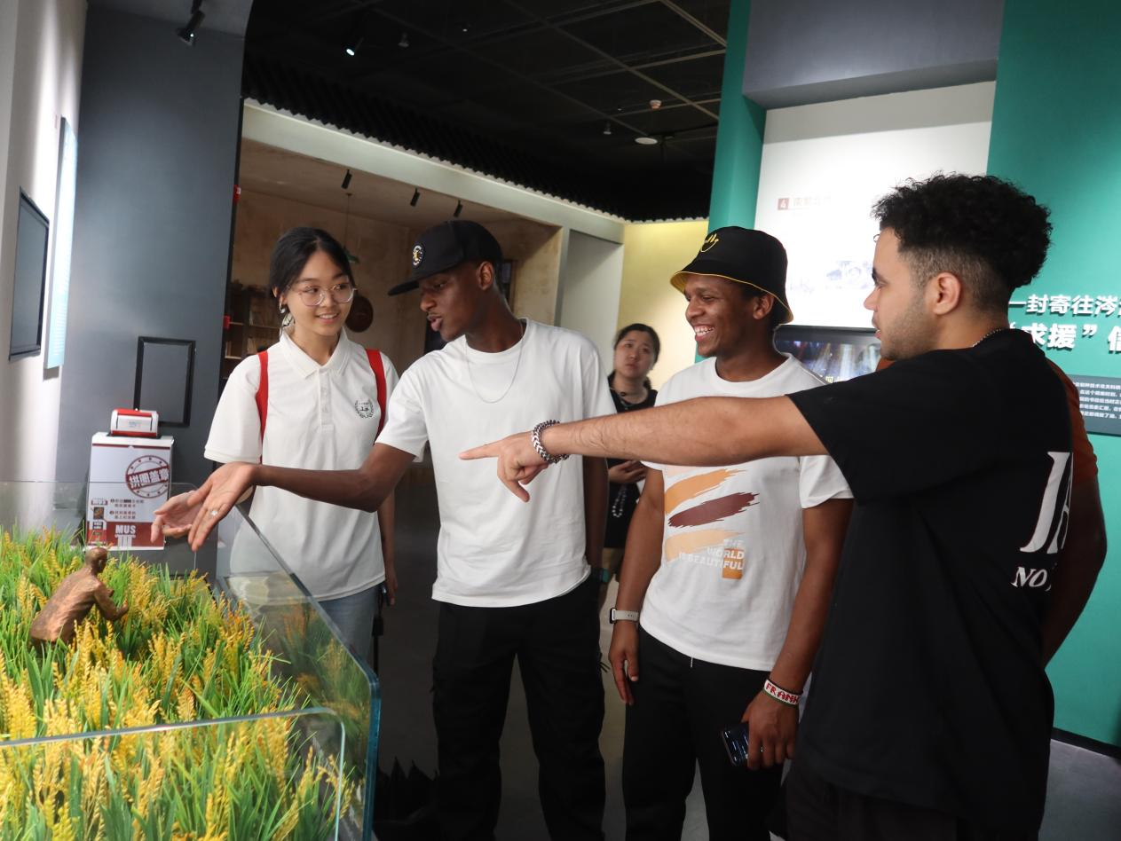 7月7日,MG冰球突破官网外国语学院研究生暑期专业实践团和来自摩洛哥、苏丹、肯尼亚、尼日利亚等国家的外国友人共同探访隆平水稻博物馆,学习水稻种植的悠久历史,了解“杂交水稻之父”——袁隆平院士的卓越成就。