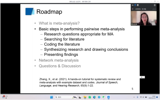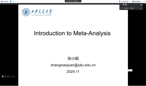 为了让学院师生了解撰写和发表应用语言学领域论文的技巧和要点,提升自身学术研究的水平和影响力,11月19日13:30,我院特邀西安交通大学外国语学院副教授张小娟为我院师生开展了主题为“Introduction to Meta-analysis”的专题讲座23级、24级全体研究生参加。