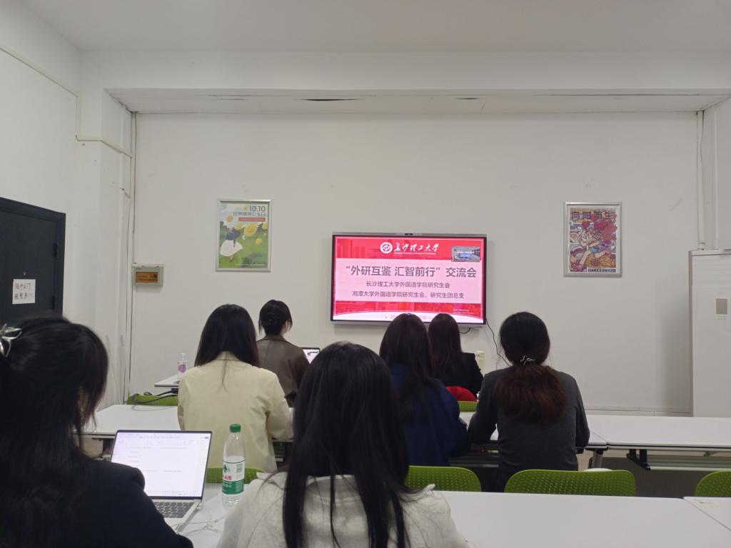 为进一步促进MG冰球突破官网与湘潭大学之间的友谊,开启两校合作新篇章,3月25日晚上,MG冰球官网外国语学院研究生会与湘大外国语学院研究生会举办一场以“外研互鉴,汇智前行”为主题的线上交流会,由我院研会轮值主席邹嘉怡主持,两院研会成员参会。我院会场设在三教研会活动室220。