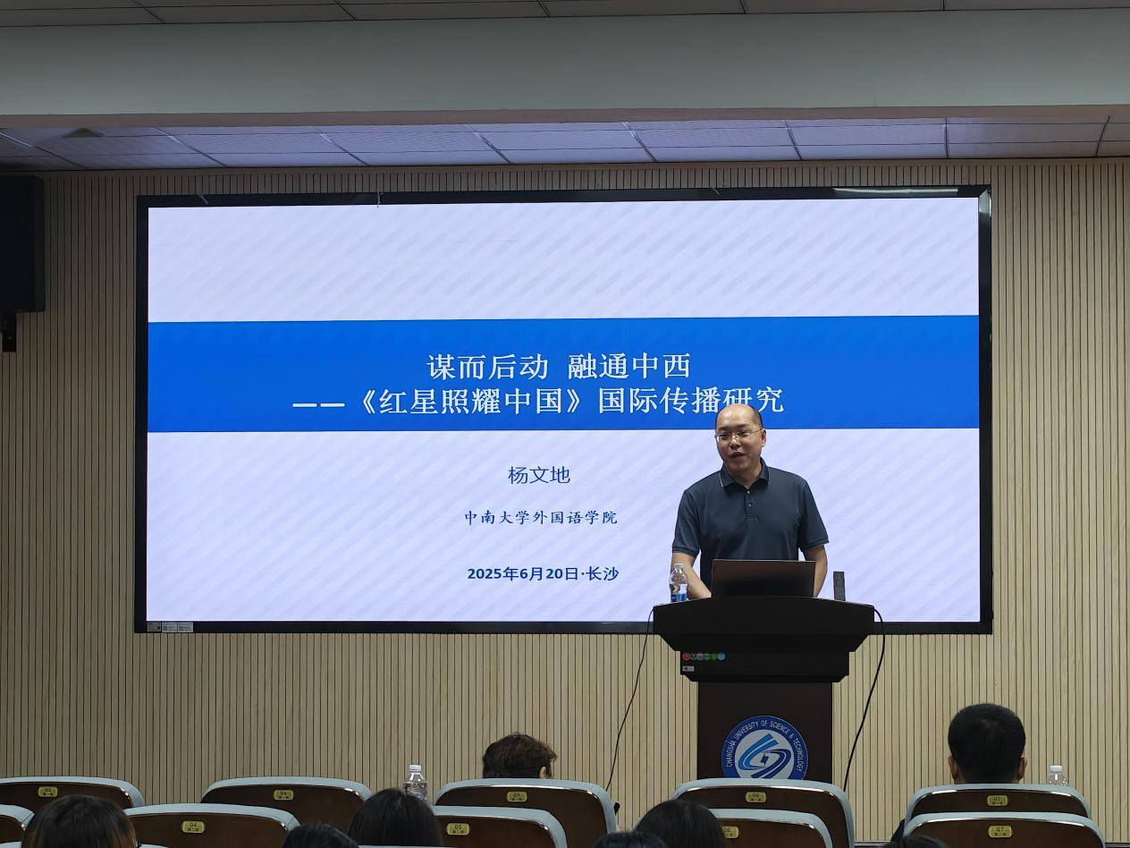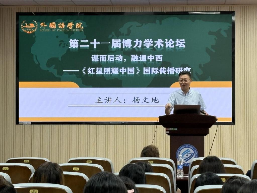 6月20日上午9点,MG冰球突破官网第二十一届研究生博力学术论坛外国语学院专题论坛学术讲座在金盆岭校区三教321报告厅顺利举行。本次讲座主题为谋而后动,融通中西——《红星照耀中国》国际传播研究,由中南大学外国语学院院长、博士生导师杨文地教授主讲,外国语学院副院长姚尧担任主持人,众多师生参会。