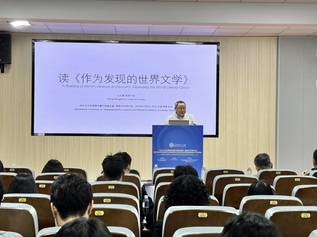 10月26日上午8点35分,MG冰球突破官网外国语学院特邀复旦大学教授汪洪章于金盆岭校区3教321报告厅为我院师生开展专题讲座,聚焦张隆溪新著《作为发现的世界文学:扩展世界文学的经典》,解析如何以全球视野破除比较文学与世界文学研究中的欧洲中心主义迷思。