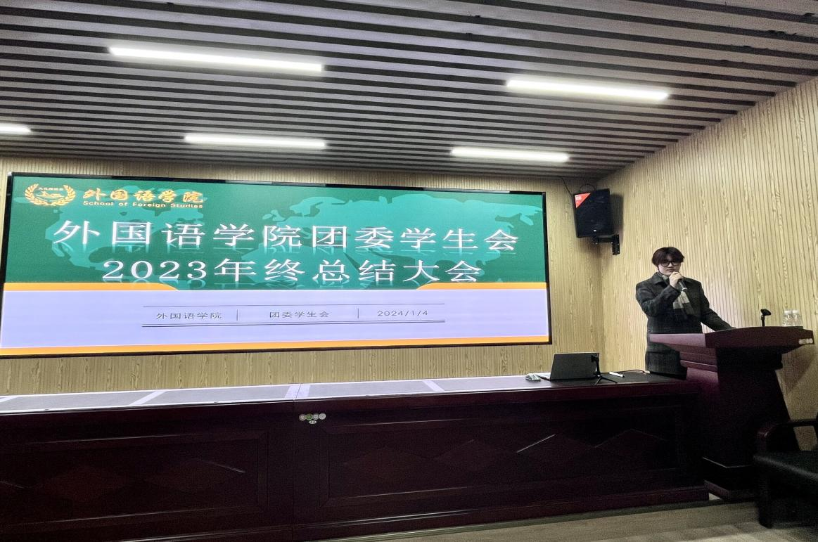 1月4日晚,为总结本学期工作,明确新学期的工作方向和目标,外国语学院于三号教学楼229报告厅举行了团委学生会2023年终总结大会。本次会议由院团委学生副书记姜勇主持,团委书记陈若晨老师及学生会全体成员参加。