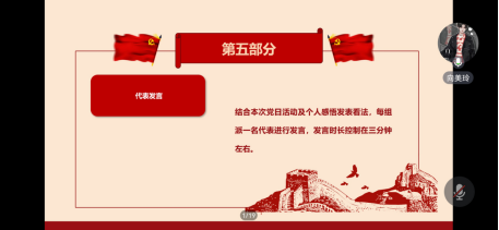 至此,本次主题党日活动顺利结束。通过重要文件的学习、趣味小游戏、个人感悟分享,有利于促进支部成员的学习,提高党性修养,不断向党组织靠拢。