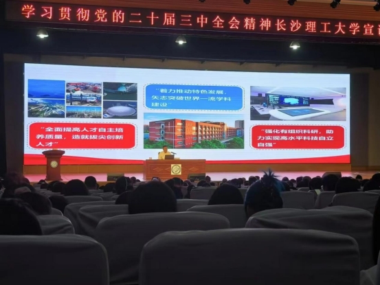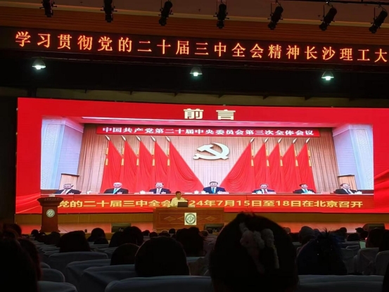 2024年9月20日上午,学习贯彻党的二十届三中全会精神MG冰球突破官网宣讲团首场报告会在金盆岭校区大礼堂举行。本次报告会由省委宣讲团成员、校党委书记付宏渊作首场宣讲报告,校党委副书记方琼主持报告会。外国语学院响应学校号召,组织学院全体教师、学生党员及骨干积极参与。
