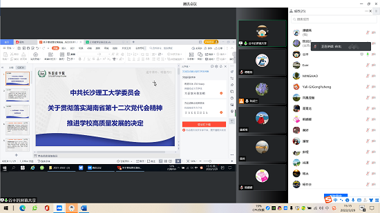 支部宣传委员领学习《中共MG冰球突破官网委员会关于贯彻落实湖南省第十二次党代会精神推进学校高质量发展的决定》。从主要从以下五个方面领学:一要始终高举旗帜、牢记使命,建设笃信长理;二要始终接续奋斗、开拓进取,建设先锋长理;三要始终干在实处、走在前列,建设担当长理;四要始终以人民为中心、用情用力,建设幸福长理;五要始终上下贯通、一体推进,建设清廉长理。
