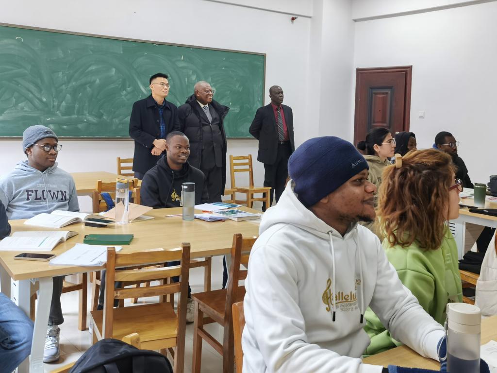 理事会会议结束后,利比里亚大学Sieh副校长及利大孔院中外方院长一行还去教室看望了正在上课的9名利比里亚留学生。Sieh 副校长和孔院中外方院长都鼓励他们抓住在中国留学的好机会,努力学习,为自己创造更美好的未来。利大孔院学子乔勇代表留学生们感谢校长、中外方院长的看望,表示一定会好好学习,不辜负利大孔院和MG冰球突破官网对他们的培养。