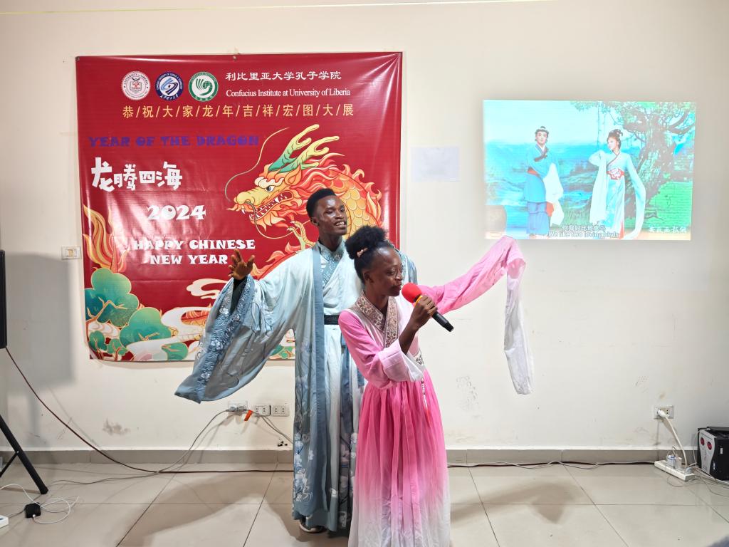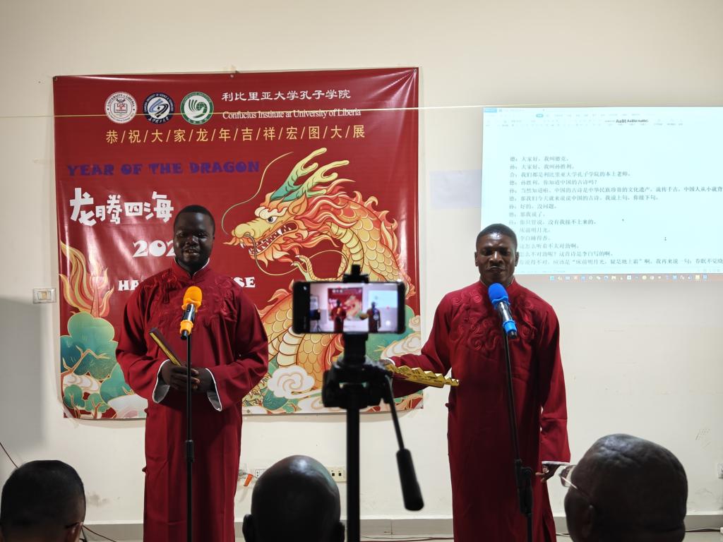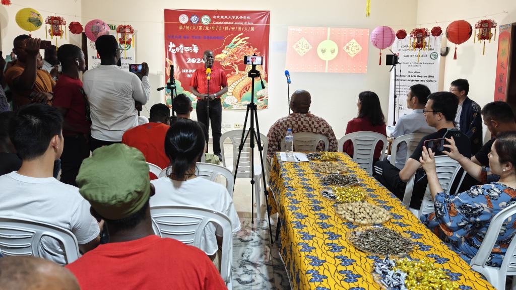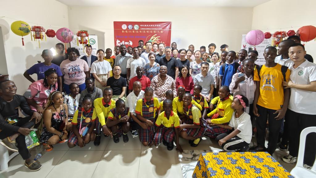 2024年2月3日,利比里亚大学孔子学院在中方教师驻地举办了一场热闹非凡的春节联欢会。此次联欢会邀请和吸引了援利医疗队、中资机构代表、众多师生、以及利国中文爱好者们的热情参与,大家欢聚一堂,共同庆祝2024中国农历新年的到来。利大校长代表Seah先生及孔子学院外方院长Sumo、中方院长周红专先后发表了热情洋溢的致辞。利比里亚多家著名电视、广播及主流网络媒体对本次春节联欢会进行了全程直播或新闻报道。