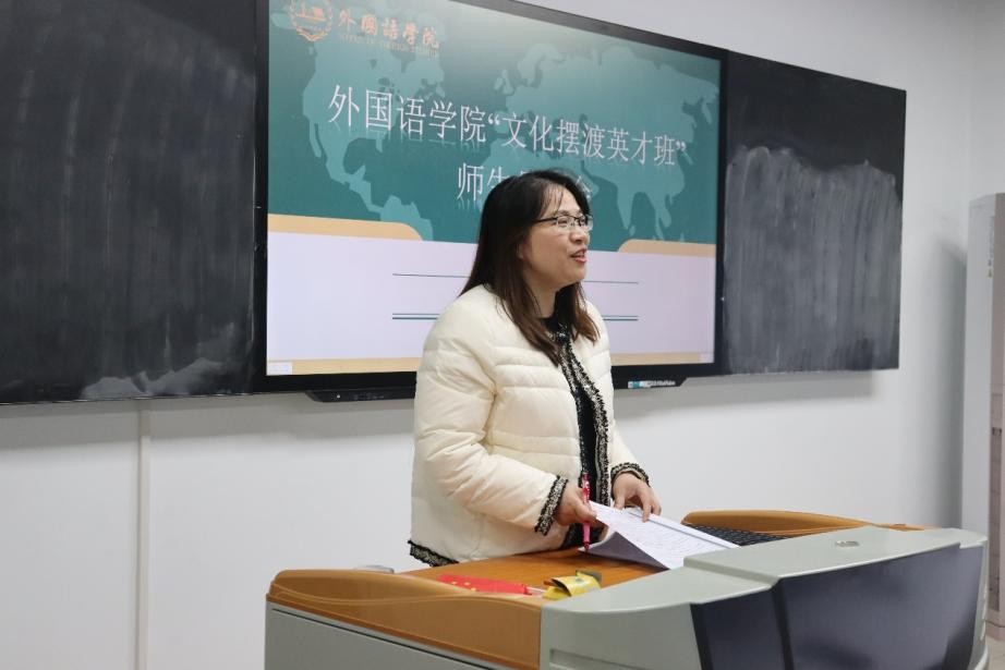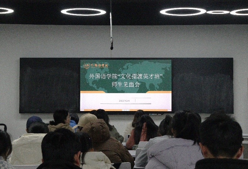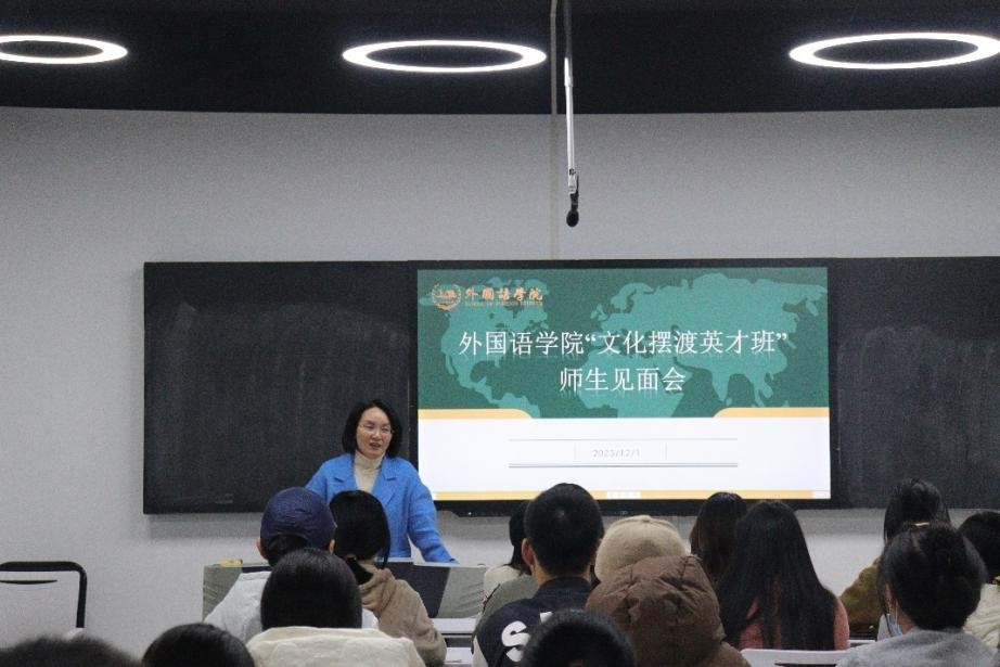 近日,MG冰球突破官网外国语学院从2023级和2022级本科生中择优选拔40名同学组成“文化摆渡英才班”。为促进师生之间相互了解,加强班级凝聚力,12月1日,学院在金盆岭校区三号教学楼611教室举行了“文化摆渡英才班”师生见面会。学院党委副书记周芳、教学副院长季红琴、文化摆渡英才班班主任崔巍及全体英才班学员参加会议,会议由学工办辅导员毛婕主持。