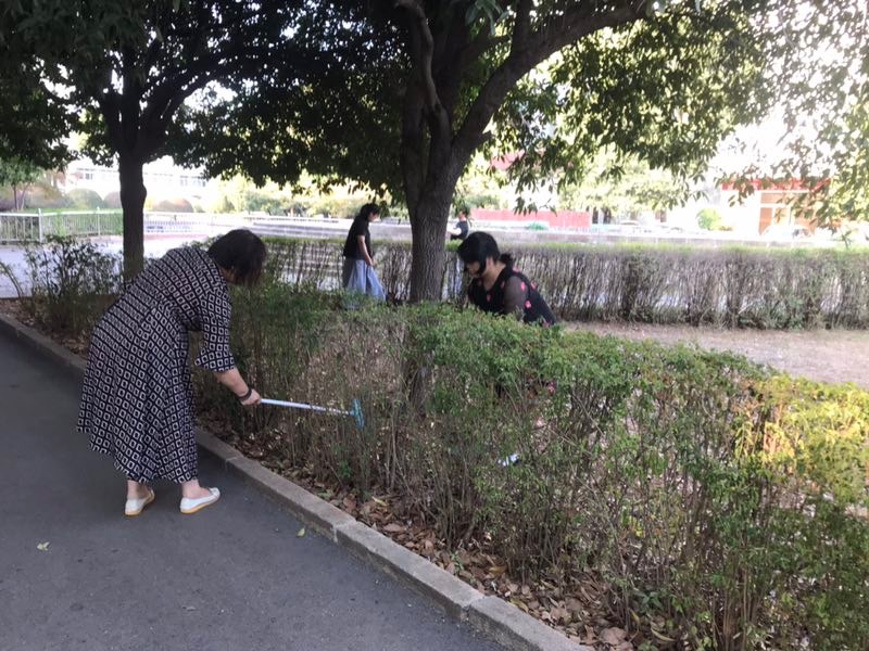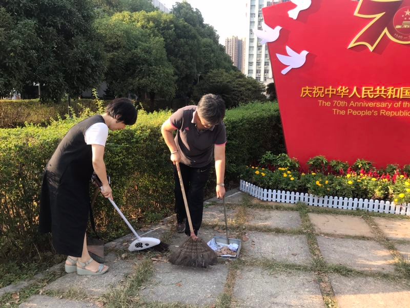 为迎接新中国成立70周年,2019年9月29日下午,档案馆支部全体党员,在支部书记许建兰的带领下,组织开展了爱校荣校党日活动——让校园更美丽义务劳动。大家顶着烈日,认真捡拾、打扫金盆岭校区办公大楼周围到校训石周边的环境卫生。此活动为档案馆支部“不忘初心、牢记使命”主题教育工作内容之一。