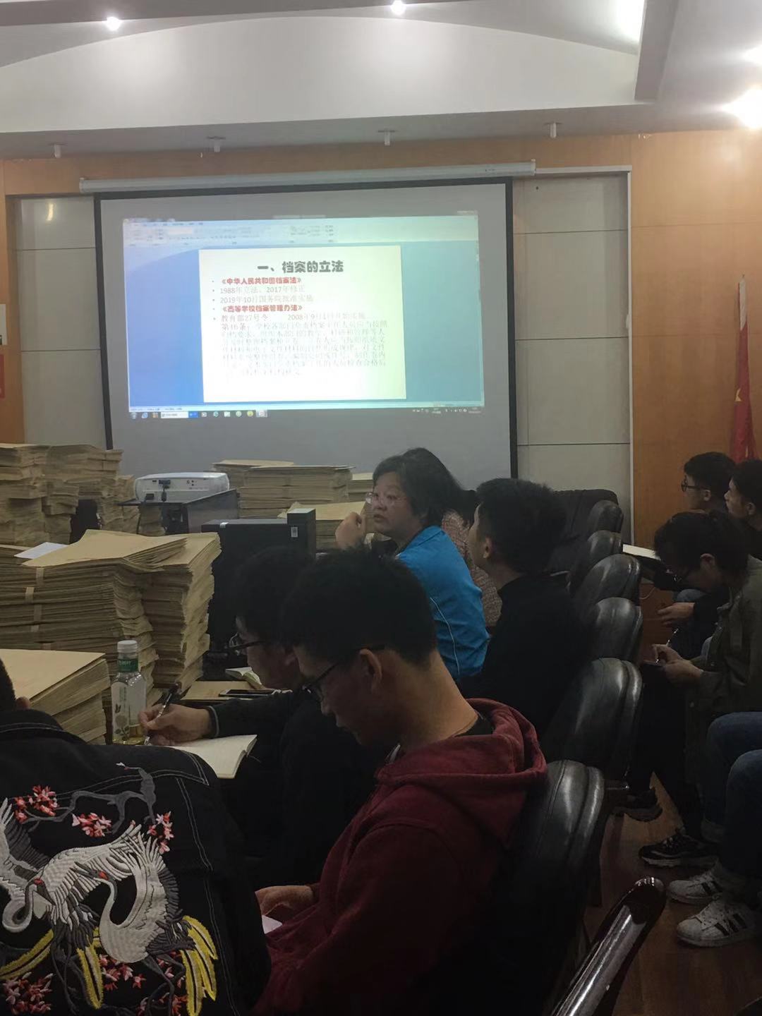 学生档案室主任尹瑛介绍了学生档案工作的重要性和法律性,强调学生档案工作要规范化、制度化,并通过系列活生生的具体案例,对学生档案怎么建档实际操作过程进行了详细讲解,使辅导员(兼职档案员)能够更快地熟悉学生档案业务,更加重视学生档案工作。
