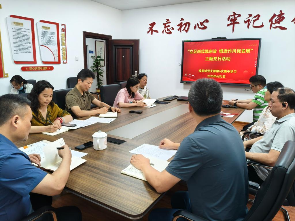 6月3日,档案馆党支部组织开展了“立足岗位践宗旨,锻造作风促发展”主题的第二次党日活动,会议由支部副书记王任飞主持,档案馆全体教职工参加。