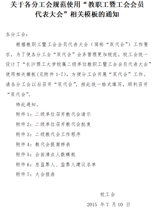 关于各分工会规范使用“教职工暨工会会员代表大会”相关模板的通知.docx