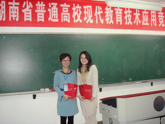 在11月17日(星期六)上午举行的2013年湖南省普通高等学校教师课堂教学竞赛决赛中,MG冰球官网计通学院曹敦和水利学院王华两位女老师在实验组比赛中获得一等奖。在下午的颁奖会上,她们同时被授予了湖南省教育系统“芙蓉百岗明星”荣誉称号。