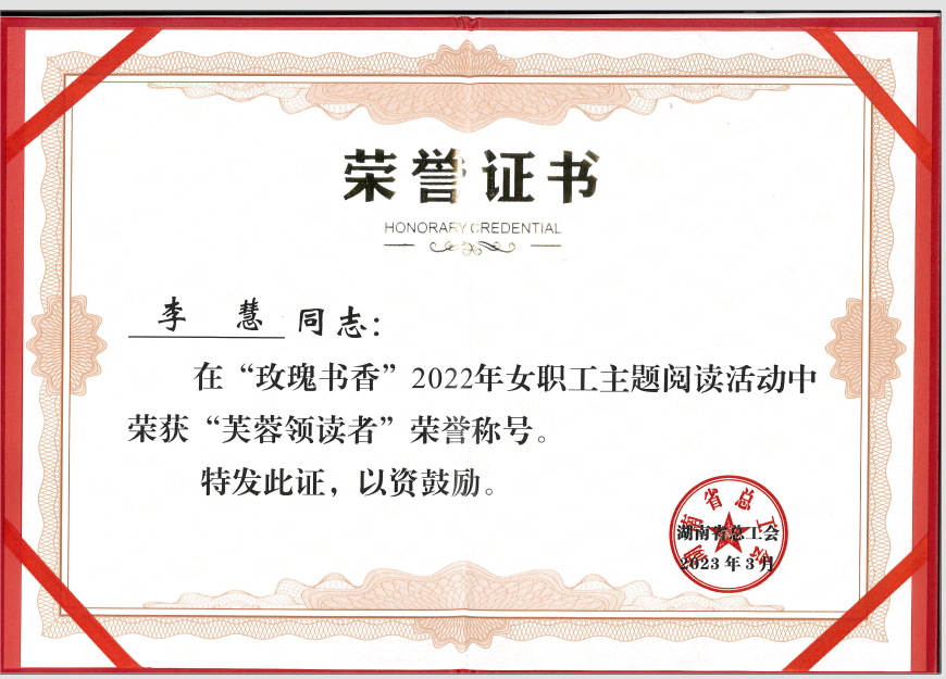 6月2日上午,湖南省总工会在在湖南宾馆会议中心举办湖南省“芙蓉杯”竞赛总结和启动暨“玫瑰书香”启动仪式。在湖南省女职工第九轮“芙蓉杯”竞赛中,MG冰球突破官网女职工业余学校被授予“女职工培训示范学校”;在2022年“玫瑰书香”女职工主题阅读活动中,学校美育中心读书会被评为“芙蓉读书会”,后勤中心子校李慧老师被评为“芙蓉领读者”。