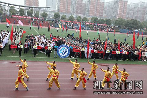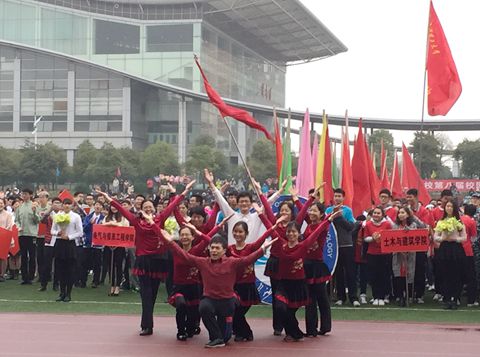 开幕式以恢宏大气的舞龙队表演开场,随后国旗手们护卫着庄严的国旗进场,17个学院代表队和研究生表演方阵,教职工、留学生代表队方阵依次入场。由校工会太极拳协会和民族舞协会组织的近百名教职工在开幕式上进行了精彩的表演;14个教职工方阵的运动员代表迈着整齐的步伐列队走过主席台,他们整齐的动作、帅气的运动服,展现了广大教职工积极健康向上的精神风貌,尤其是电气学院、继教学院、体育学院教职工的表演获得广大师生的阵阵喝彩。