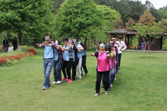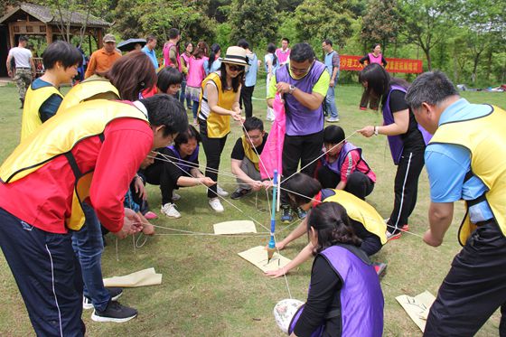 全体参训人员一到达训练基地后,在教练的带领下就开始了拓展训练活动。队员们统一着装,经过热身后,被随机分为四个团队,并分别为自己的队伍设计队名、队旗、队歌,选出团队的负责人,完成精心设计的四个项目,包括同心圆、变形虫寻宝、书写工会职能、穿越火线。在教官的示范和引导下,大家齐心协力,相互配合,团结努力完成各项任务,训练场不时传来响亮有力的口号和掌声,充分展示了学校工会干部团结、协作、积极、向上的精神风貌。通过训练,大家增进了彼此间的了解和信任,树立了相互配合、相互支持的团队精神,挑战了自我,缓解了压力,收获了快乐。大家纷纷表示,要把训练中激发出来的昂扬斗志和良好的精神风貌体现到日常工作中去,为学校发展做出更大贡献。