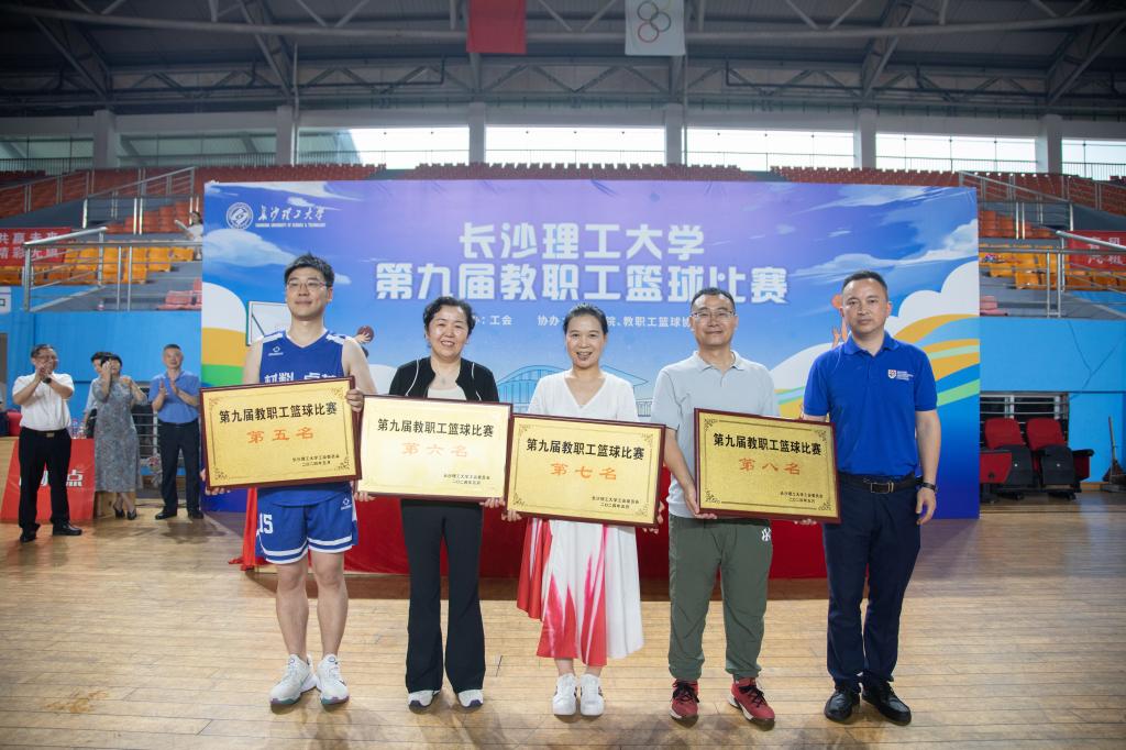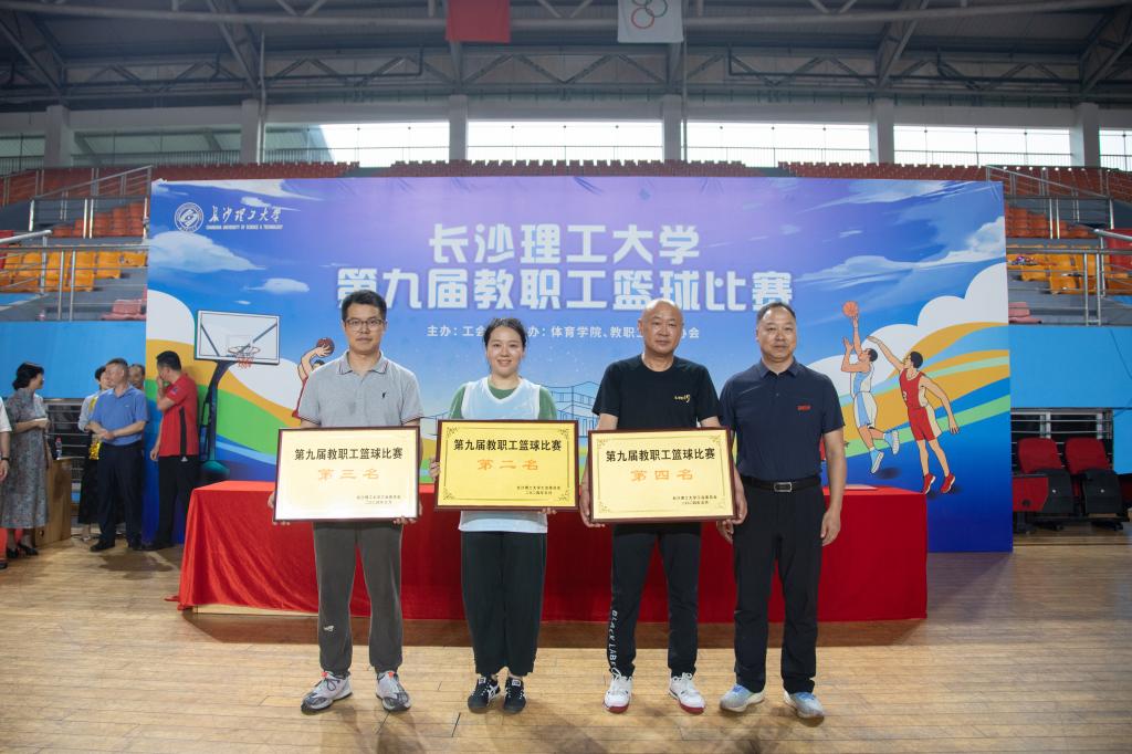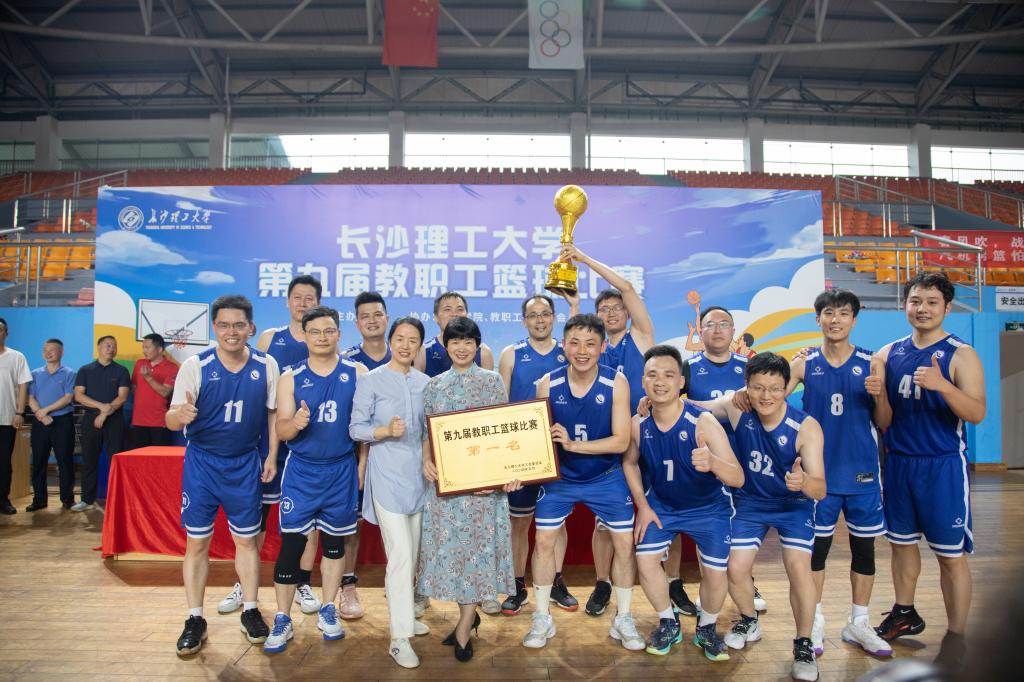 5月21日下午,MG冰球官网第九届教职工篮球赛在云塘校区体育馆落下帷幕。党委委员、副校长、工会主席蒋璟萍,党委委员、副校长胡永乐,以及工会、体育学院等部门负责人参加闭幕式并为获奖队伍和单位颁奖。