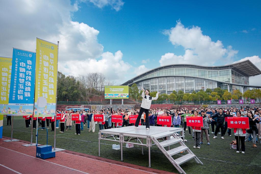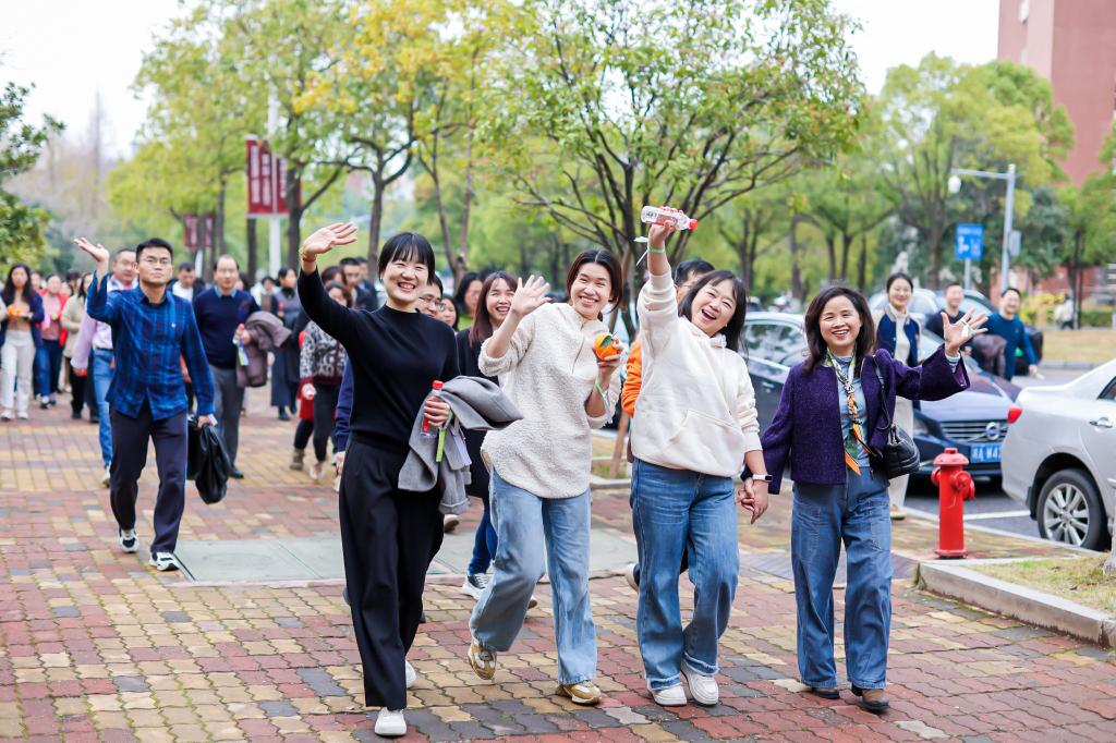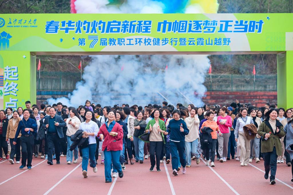 下午3时许,《向快乐出发》热身操点燃现场热情。随着发令枪响,本次活动正式拉开序幕。选手们精神焕发,迎着春日阳光健步如飞。在享受健步走带来活力与激情的同时,教职工们也尽览沿途春意盎然的校园景致。活动特别设置“巾帼芳华.强国有我”“幸福长理.扬帆奋进”“时不待我.只争朝夕”等主题打卡点,沿途“为幸福长理打call”等创意手卡成为热门合影地标,将运动激情转化为文化浸润的生动实践,在4公里的活力征程中展现长理人奋进“双一流”的昂扬姿态。