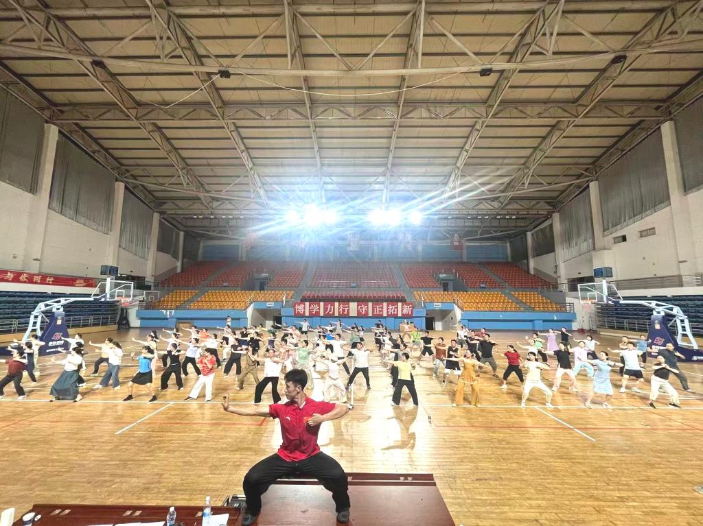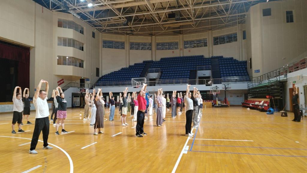 9月16日晚18时,MG冰球官网金盆岭校区与云塘校区体育馆同步开展幸福长理之教职工健身气功八段锦培训,吸引150余名教职工踊跃参与。现场学习气氛热烈,训练有序开展。