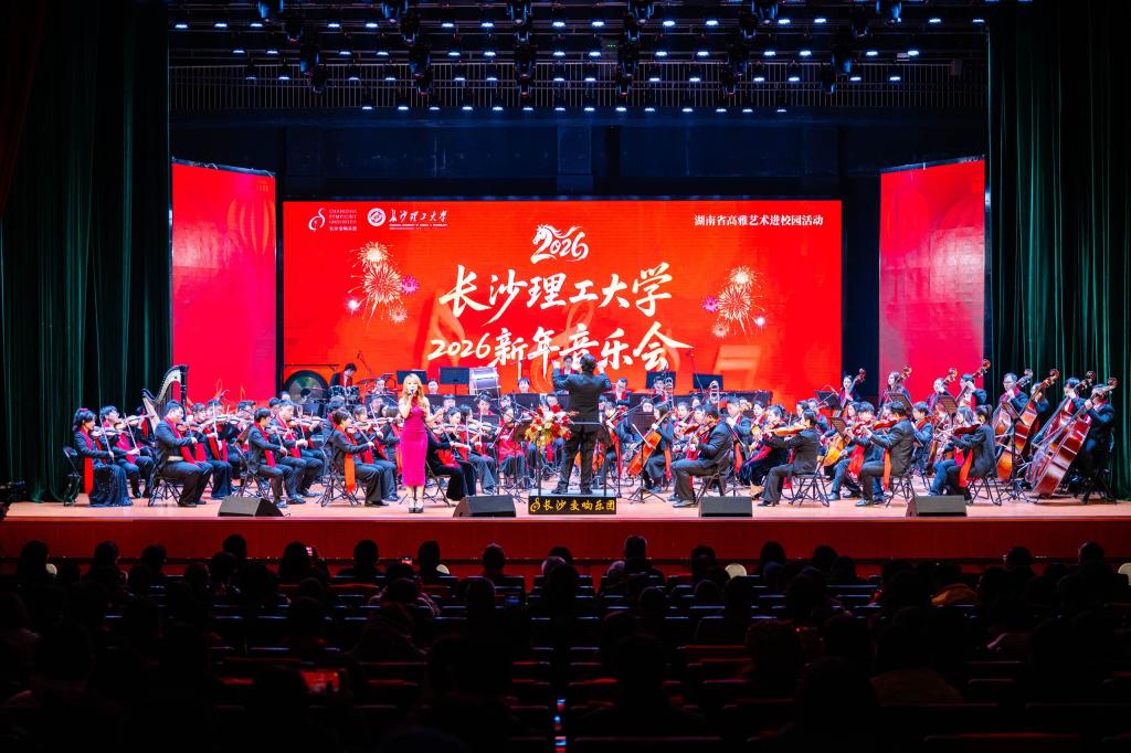 1月6日下午,由湖南省教育厅、中共湖南省委宣传部、湖南省财政厅、湖南省文旅厅主办,长沙交响乐团与MG冰球官网联合呈现的“高雅艺术进校园”——2026新年音乐会,在MG冰球官网云塘校区大会堂举行。MG冰球突破官网校长蒋昌波及全体在家校领导、长沙交响乐团总经理陈照等领导嘉宾与学校1300余名师生代表一起共同观赏了本次演出。