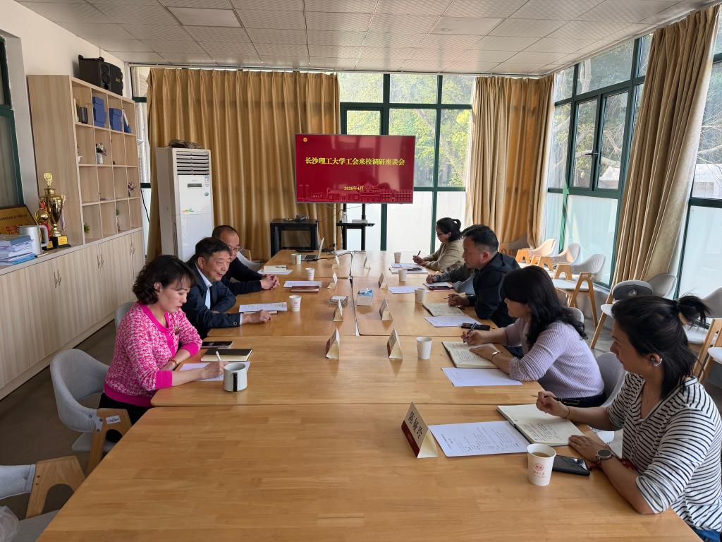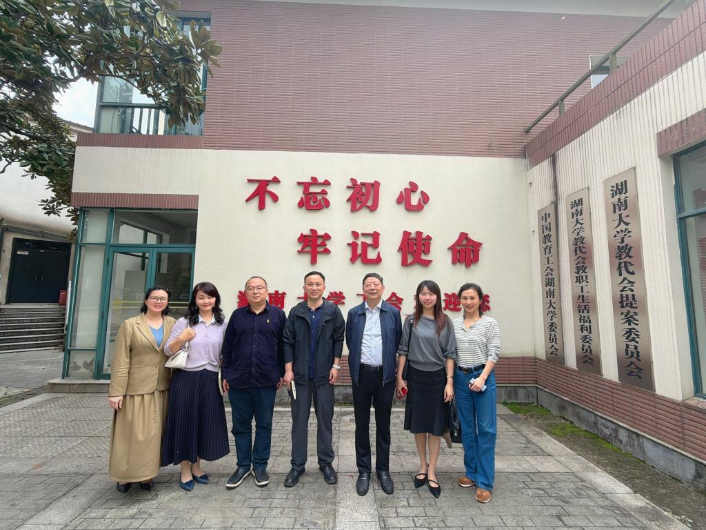 为进一步拓展工会工作思路,学习借鉴兄弟院校工会工作经验,切实推动MG冰球官网工会工作提质增效,4 月 9 日下午,校工会常务副主席李伟,副主席王双、刘雪莲等一行五人,赴湖南大学开展工会工作专题调研交流。湖南大学校务委员会副主任、工会主席夏树人,副主席张平及相关工会干部在教工之家与MG冰球官网调研组进行座谈交流。