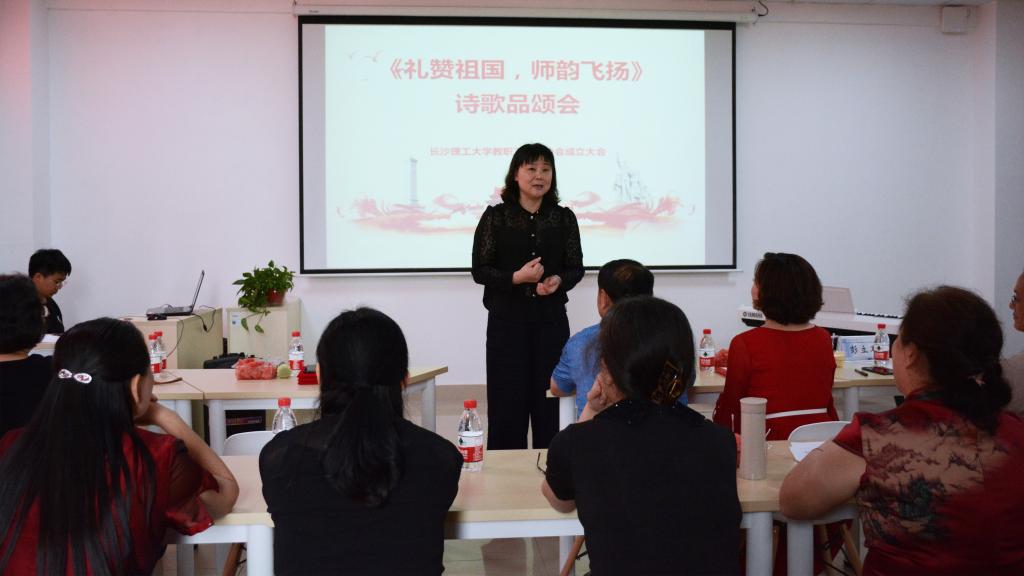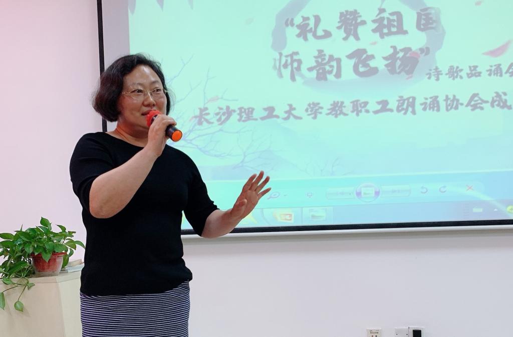 雅言传承文明,经典浸润人生。“礼赞祖国,师韵飞扬”诗歌朗诵会——长沙理工大学教职工朗诵协会成立大会于2019年5月29日下午2:00在工1-504会议室隆重举行。出席本次会议的领导有校“双一流”办主任敖洁,校工会常务副主席曹瑛,副主席赵爱群,电气学院党委书记符慧林等,并盛邀中国演说家俱乐部(湖南)主席兼朗诵专业艺术委员会主任彭立军老师为点评嘉宾。