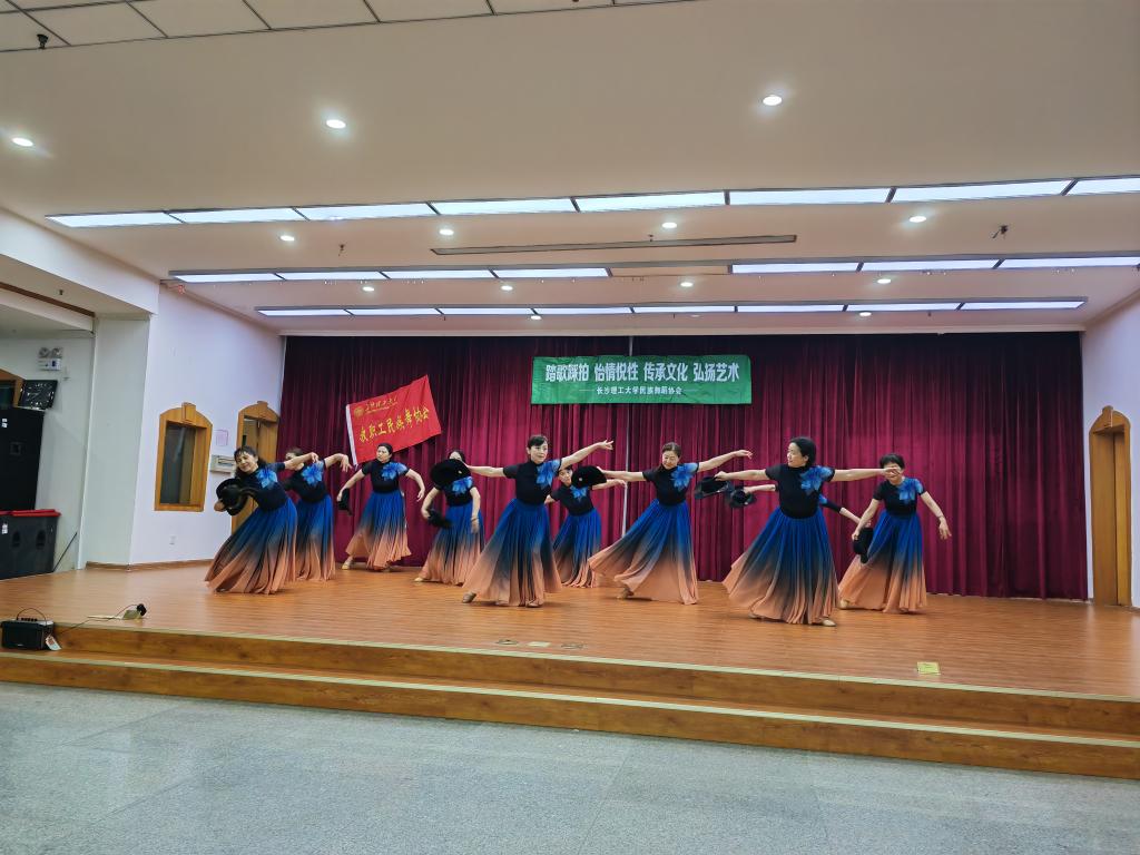 为了检查本学期舞蹈教学效果,达到互相学习,互相帮助,互相促进,共同提高的目的,民舞协会于7月6日在金盆岭校区五号教学楼多功能厅开展了别具风格的舞蹈教学成果展示活动。即两个班的成员集中在一起,展示本学期所学内容,每个人参加各自班上的群舞(全体)表演,在此基础上,会员们还可以将在协会里以前学过的或者自己在校外学过的作品搬上舞台,为大家呈现更多的舞姿:或独舞、或自由组合——双人舞、三五人组舞等等。