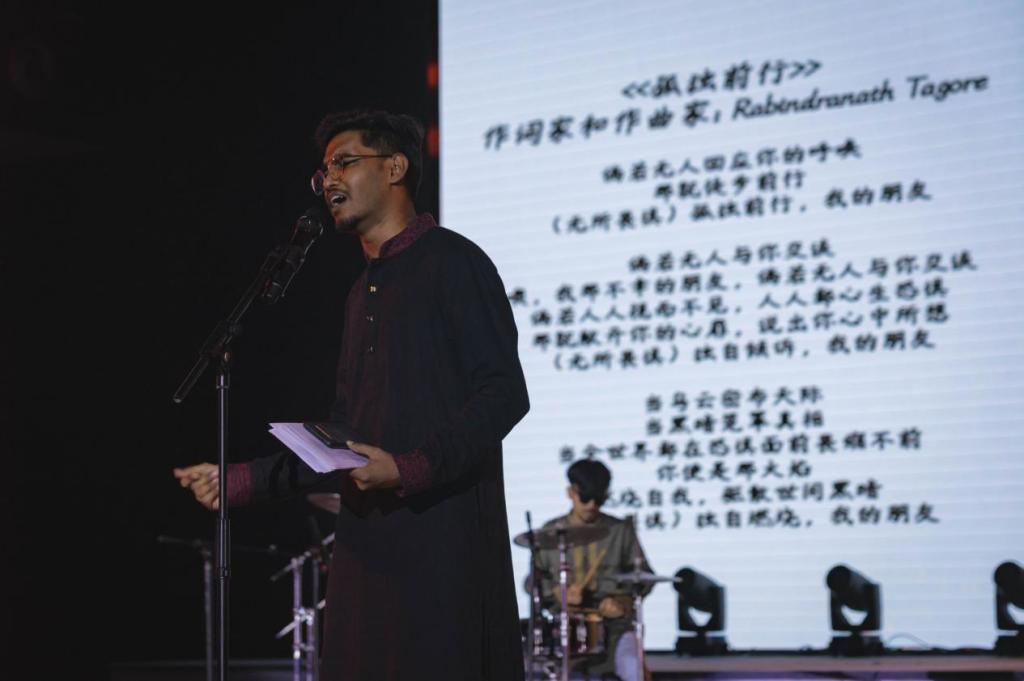 当夜,十个心灵故事伴随着十首旋律,围绕着迷茫、挣扎、感动、力量这四个主题编织色彩。故事主人公来自我们身边平凡的普通人,他们真诚地讲述自己的心路历程,分享鼓励自己成长的音乐。演唱者们则用深情的歌声和真挚的表演,将故事中的情感细腻地传达给每一位听众。《无名的人》分享了作者从北方偏僻小镇来到南方大城市读大学的经历,从不适应到逐渐融入的过程引发了许多新生的同感;《苔》的讲述者分享了她在乡村支教时的收获与感动,那些淳朴和真诚深深地打动了现场的每一位观众;《一荤一素》《云落成雨》《好好说再见》等歌曲流露着对父母、朋友难以忘怀的真情;《我的美丽》《第三人称》和《Ekla Chala ree》的故事主人公在抑郁症、校园暴力等挫折中跌跌撞撞地前行,以勇气与力量走出困境。当《Ekla Chala ree》的故事讲述者孟加拉国留学生杰本唱到“如果没有人回应你的呼唤,那就自己走吧”时,现场许多观众都为之触动,也红了眼眶。