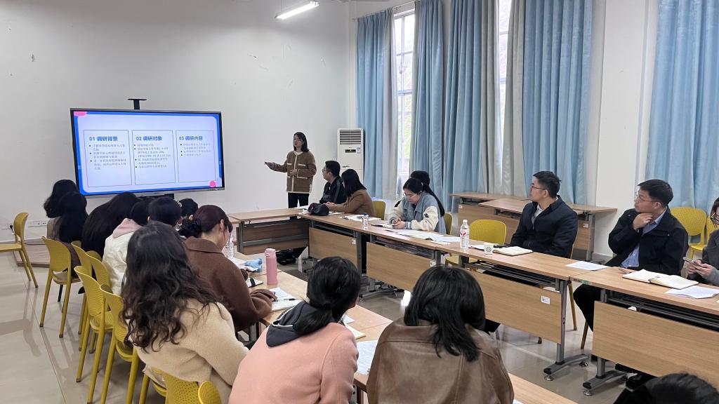 会上,心理中心主任易敏全面梳理了中心本学期重点工作及各学院开学初心理排查工作的落实情况,围绕新学期初面向在校学生和心理辅导员开展的问卷调研,详细分析MG冰球官网学生心理健康现状和需求,以及学院心理育人工作面临的困境,提出丰富心理活动资源、优化院校协同和提升队伍建设等工作对策。在工作交流环节中,数统学院心理辅导员刘晓丹结合学院工作实践,分享了心理排查“前-中-后”全流程实施方案,强调心理工作既要守住规范“尺度”,也要饱含人文“温度”。材料学院心理辅导员杨宁就如何开展团体辅导工作进行分享,详细介绍了活动方案构思、宣传推广及复盘反馈的具体做法,强调团体动力在心理育人工作实践中的重要性。