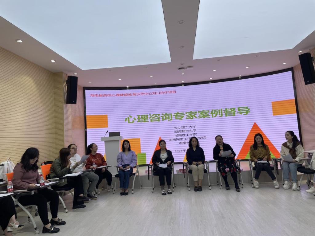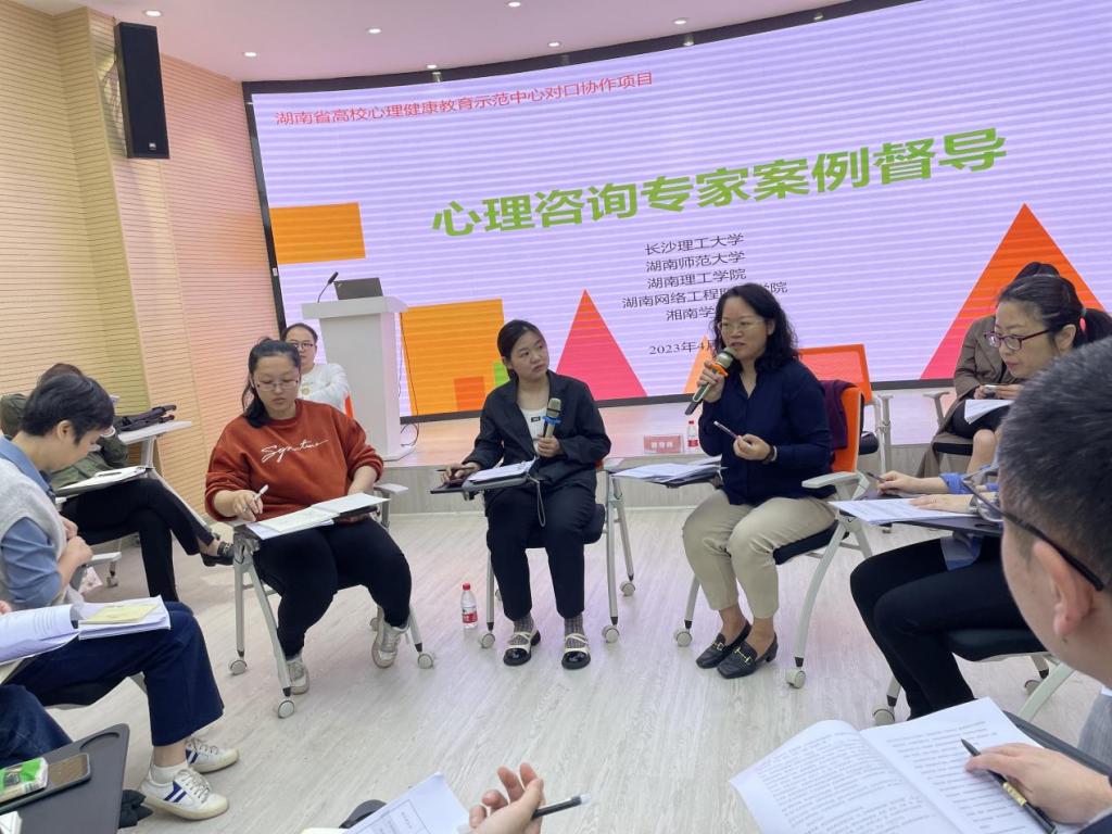 2023年4月14日,MG冰球突破官网心理中心作为湖南省高校心理健康教育示范中心,联合湖南师范大学和三所对口协作学校,于湖南师范大学心理中心团体辅导室开展了2023年春季学期第一期心理咨询案例专家督导。本次督导师为北京师范大学心理学部副教授、临床与咨询心理学专硕项目硕士导师、中国心理学会临床心理学注册工作委员会首批督导师孟莉老师(督导号:D-06-059)。本次督导采用内圈和外圈结合的方式进行,五所高校共35位心理中心专职老师、兼职咨询师参加,本校兼职咨询师谢贝和李洁老师进行了案例报告。